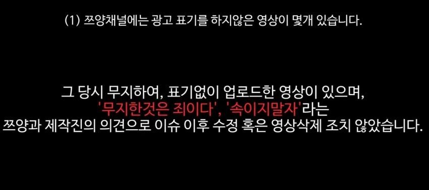 "하지만 방송 초창기에 올라간 영상 중에 광고 임에도 그 사실을 표시하지 않은 영상이 있음을 인정하였으며, 광고 표기 방법도 9월 1일부터 개정될 가이드라인을 따르지 않았다"