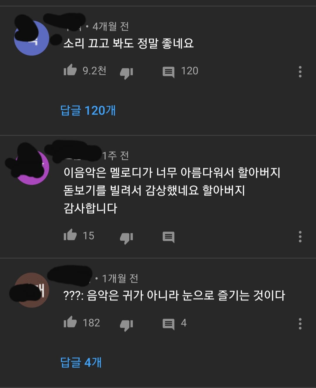 피아노 치는 영상인데도 불구하고 "소리를 끄고 본다", "음악은 눈으로 즐기는 것이다", "나의 장래희망은 피아노다"라며 많은 주접(?) 댓글들이 있습니다.