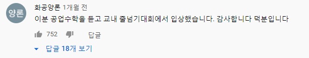 에듀캐스트 정순영의 강의영상에 따른 유튜브 댓글이 정말 재치 있습니다.
